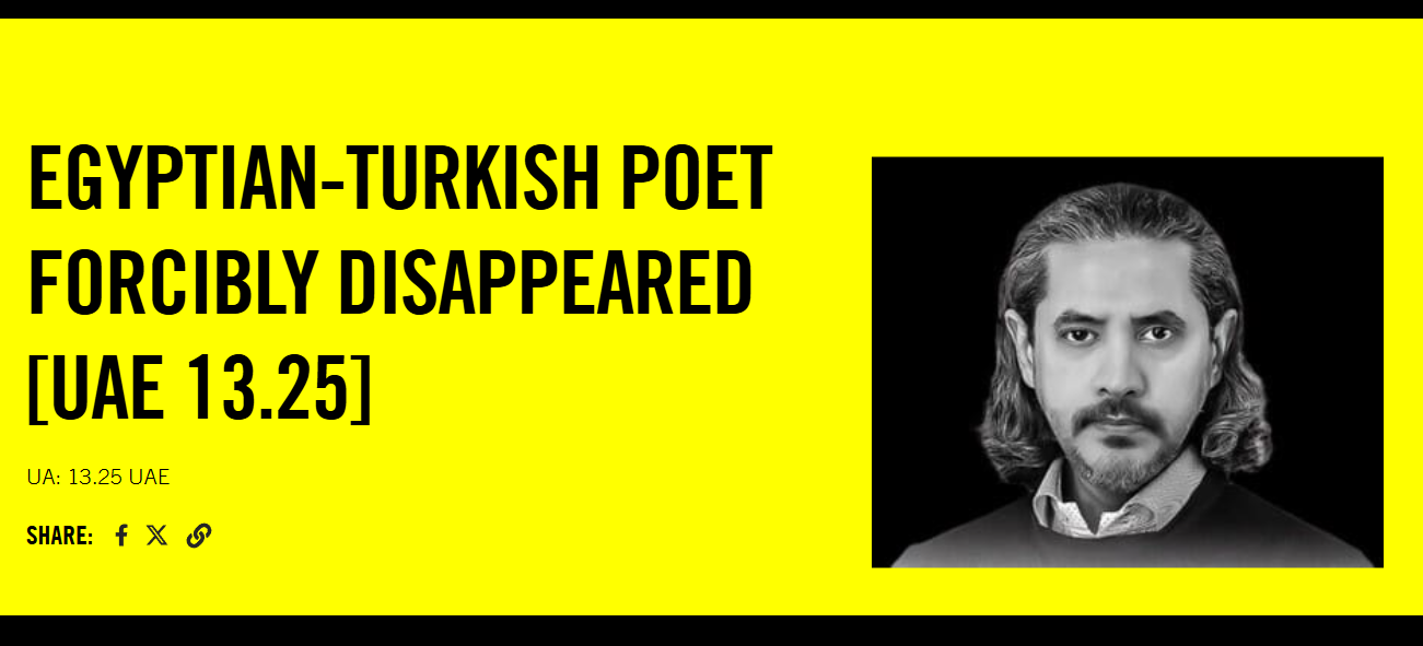 بعد عام من ترحيله القسري... منظمات حقوقية تدين استمرار احتجاز الشاعر عبد الرحمن يوسف في الإمارات