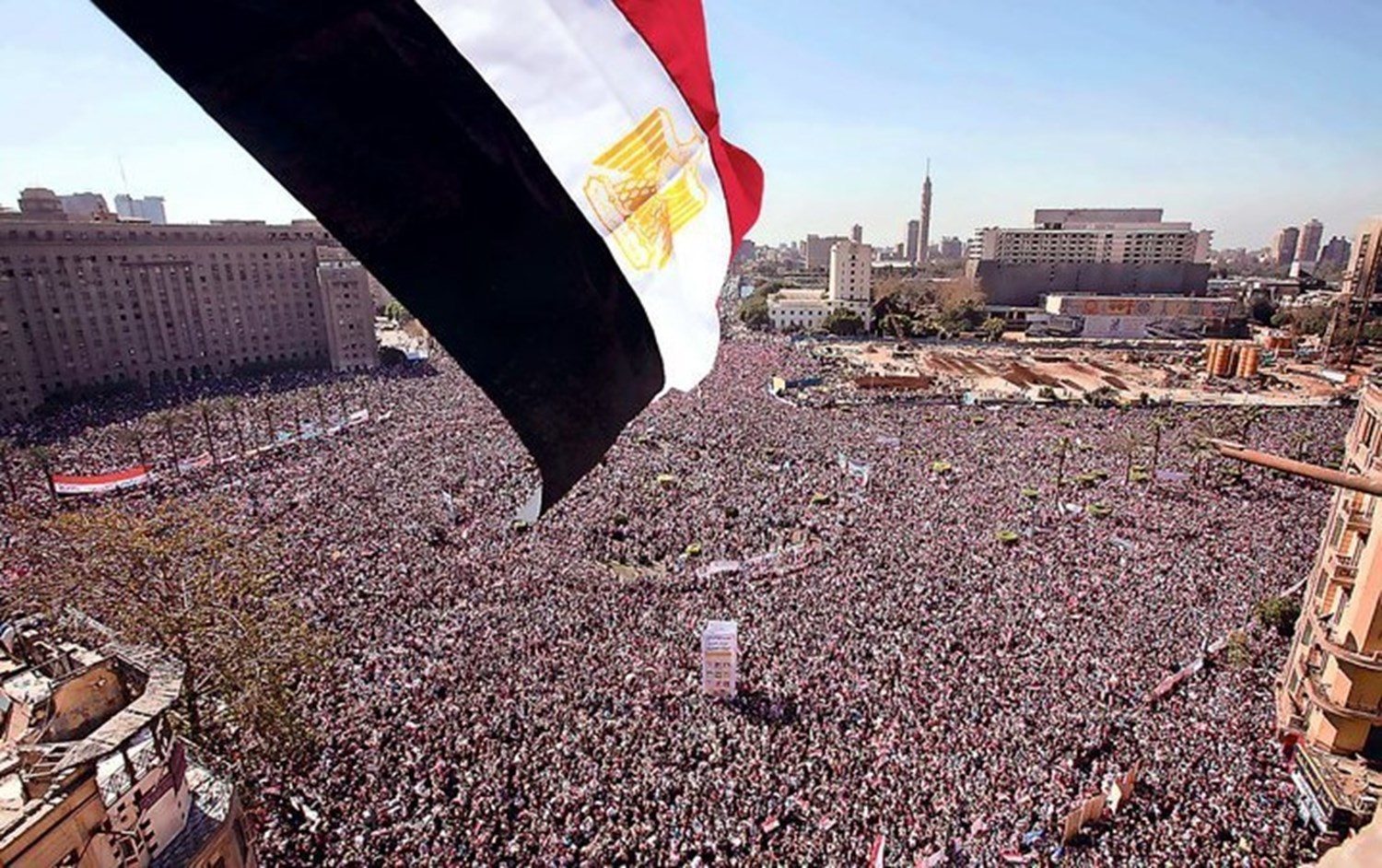 وقد ألقى الشاعر قصيدة جديدة بعنوان "">الميدان يجمع!".