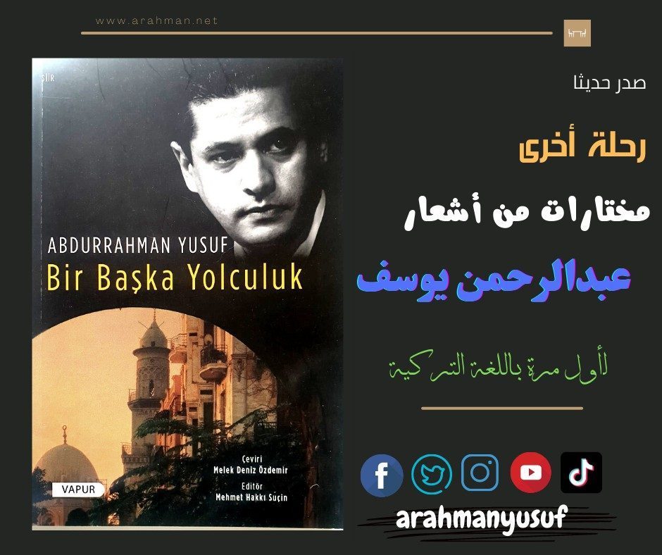 صدر حديثًا ديوان "رحلة أخرى" للشاعر المصري عبد الرحمن يوسف عن دار "وابور"، ويعد أول دواوينه المترجمة إلى اللغة التركية.